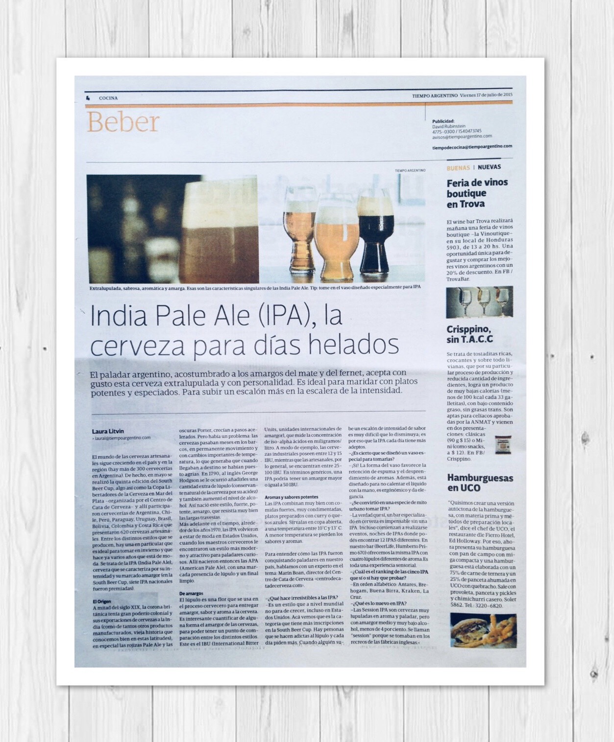 Sección: Cocina – Beber “India Pale Ale (IPA), la cerveza para días helados.